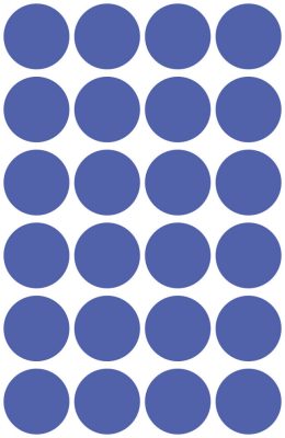 Avery Zweckform 18 mm átmérőjű, kék színű jelölő pötty, jelölő pont. Egy csomagban 4 lapon, összesen 96 darab jelölő címke található. Különleges, visszaszedhető ragasztóval ellátott jelölőpötty.