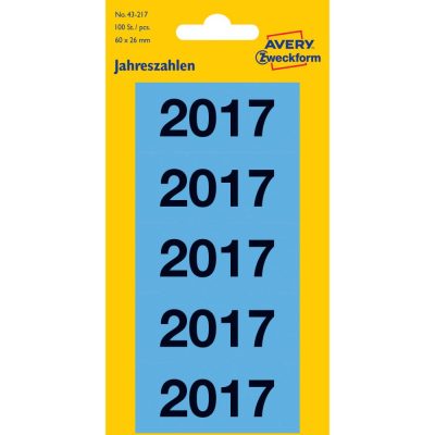 • Avery Zweckform No. 43-217 kék színű 60 x 26 mm méretű, 2017-es évszámmal előre megnyomtatott, öntapadó címke, permanens ragasztóval - kiszerelés: 100 címke / 20 ív