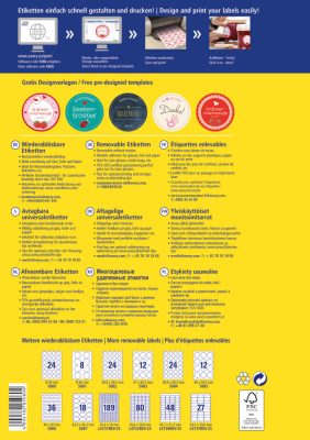 Borotvaéles nyomtatási képA minőségi alapanyagoknak köszönhetően a nyomatot borotvaéles képek (vékony, határozott, tisztán látható kontúrok), kiváló toner tapadás, valamint elkenődésmentes felület jellemzi. Az Avery Zweckform címkéken kiváló nyomtatási eredményt érhetünk el, melyek 100%-ban kompatibilisek az általánosan használt nyomtatókkal (HP, Epson, Canon, Brother, Samsung, Kyocera, Lexmark, OKI).
