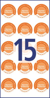 Avery Zweckform 20 mm átmérőjű, narancssárga színű, matt felületű, biztonsági, öntapadós hitelesítő címke (ellenőrzési matrica, plakett) 2027-2032-es évszámmal, 12 hónapos beosztással, Nächster Prüftermin felirattal, biztonsági ragasztóval. A speciális anyagának és ragasztórétegének köszönhetően a címkét nem lehet nyom nélkül áthelyezni, eltávolítani. Egy csomagban 8 lapon, összesen 120 darab, egyenként leválasztható hitelesítő címke található.