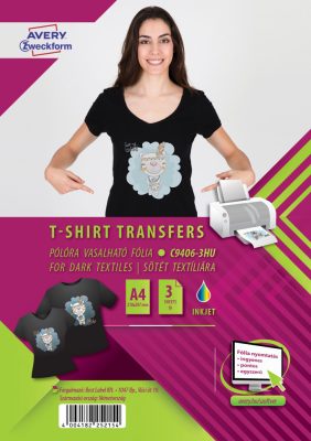 • Avery Zweckform No. C9406-3HU sötét pólóra, textilre vasalható fólia - méret: 210 x 297 mm (A4) - 3 ív / csomag (Avery C9406-3HU)