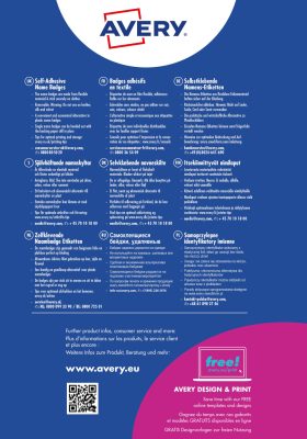 Az Avery Zweckform ingyenes szoftverekkel és sablonokkal segíti az etikett címkék gyors és esztétikus megtervezését, kinyomtatását. A legfrissebb Avery Zweckform szoftverek és frissítések öntapadó etikett címkék tervezéséhez és kinyomtatásához az alábbi linkre kattintva érhetők el: angol nyelvű oldal, német nyelvű oldal, magyar nyelvű oldal. Ingyenesen letölthető Microsoft Word sablon Avery Zweckform J4785-20 címke szerkesztéséhez (letöltés). Szoftverkód: Avery J4785.