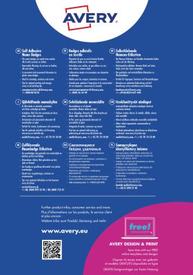 Az Avery Zweckform ingyenes szoftverekkel és sablonokkal segíti az etikett címkék gyors és esztétikus megtervezését, kinyomtatását. A legfrissebb Avery Zweckform szoftverek és frissítések öntapadó etikett címkék tervezéséhez és kinyomtatásához az alábbi linkre kattintva érhetők el: angol nyelvű oldal, német nyelvű oldal, magyar nyelvű oldal. Ingyenesen letölthető Microsoft Word sablon Avery Zweckform L4785-20 címke szerkesztéséhez (letöltés). Szoftverkód: Avery L4785.