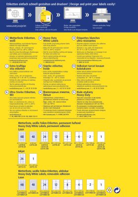 • Avery Zweckform No. L7063-20 fehér színű 99,1 x 38,1 mm méretű, lézernyomtatóval nyomtatható, öntapadós időjárásálló etikett címke, erős, tartós ragasztóval A4-es íven - kiszerelés: 280 címke / 20 ív