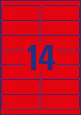 • Avery Zweckform No. L7263R-25 lézeres 99,1 x 38,1 mm méretű visszaszedhető, neon piros öntapadó etikett címke A4-es íven - 350 címke / csomag - 25 ív / csomag (Avery L7263R-25)