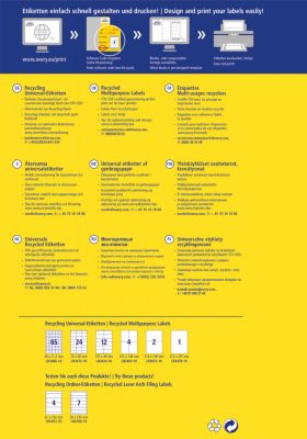 • Avery Zweckform No. LR3424-10 natúr fehér színű 105 x 48 mm méretű, univerzálisan nyomtatható, környezetbarát öntapadós etikett címke, permanens ragasztóval A4-es íven - kiszerelés: 120 címke / 10 ív