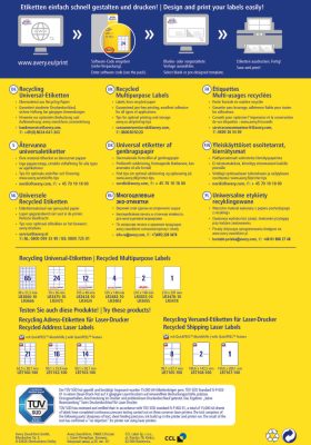 TÜV SÜD tanúsítványTÜV SÜD által bevizsgált nyomtatható öntapadós etikett címke. A minősítés során általánosan használt lézernyomtatókkal, 15000 ív Avery Zweckform öntapadós címkét nyomtattak ki probléma nélkül.