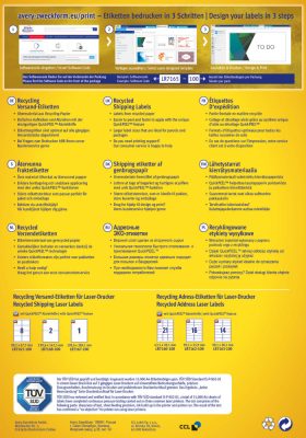 TÜV SÜD tanúsítványTÜV SÜD által bevizsgált nyomtatható öntapadós etikett címke. A minősítés során általánosan használt lézernyomtatókkal, 15000 ív Avery Zweckform öntapadós címkét nyomtattak ki probléma nélkül.