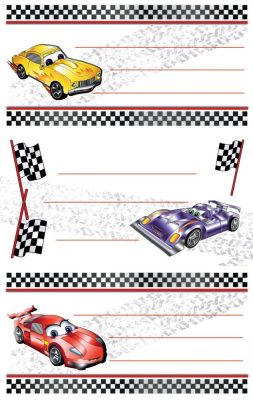 Avery Zweckform Z-Design No. 59201 öntapadó füzet matrica versenyautók motívumokkal. A csomag összesen 6 darab, külön-külön leválasztható füzet matricát tartalmaz.