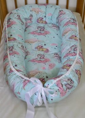 Babafészek - unikornis mintával - menta színben