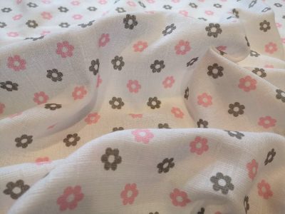 Babakifogó Szürke Rózsaszín virág 100 % pamut