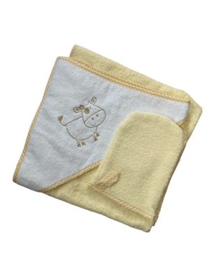 Puha tapintása és gyengéd anyaga kifejezetten az érzékeny bababőr igényeihez készült, míg a kapucnis kialakítás segít melegen tartani a baba fejét fürdés után.