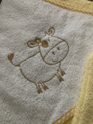 A kedves, hímzett mintával díszített kapucni nemcsak praktikus, hanem szerethető megjelenést is ad a törölközőnek. Ideális választás mindennapi használatra, babafürdetéshez, uszodába vagy akár ajándéknak is.
