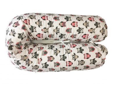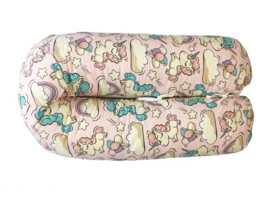Többfunkciós kismamapárna félkör ívű kiképzéssel, mikrogyöngy töltettel. Huzata színes, változatos mintájú, zipzáras megoldású, így könnyen levehető és kimosható. Kényelmes deréktámasz a kismamának a terhesség előrehaladtával, később a baba megszületése után szoptatáskor is praktikusan használható.