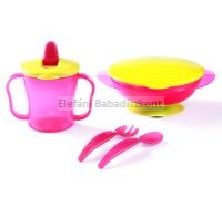 Tapadókorongos tányér+evőeszköz+itatópohár