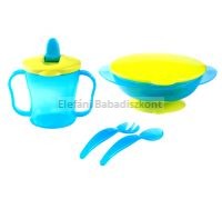 Tapadókorongos tányér+evőeszköz+itatópohár