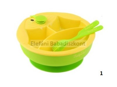 Három rekeszes, tapadókorongos, melegen tartó tányér+evőeszköz