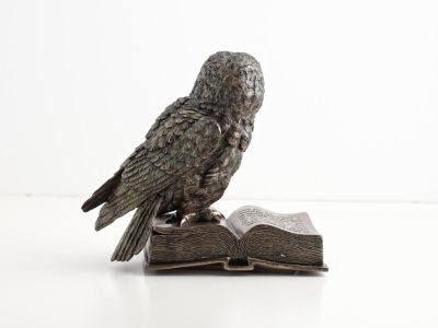 A stabil talapzat, a részletgazdag kidolgozás minden egyes vonásában tükrözi a precizitást és művészi gondosságot. Ez a bagoly nem csupán dekoráció, hanem egy szimbólum, ami emlékeztet a tudás hatalmára és a bölcsesség elérésének fontosságára.