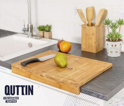 A Quttin Bamboo vágódeszka ütköző peremmel egyesíti a természetességet, a funkcionalitást és a biztonságot.