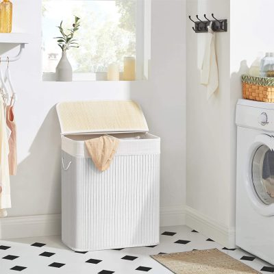 Bambusz szennyeskosár 100L, 2 rekeszes ruhakosár mosható zsákkal |