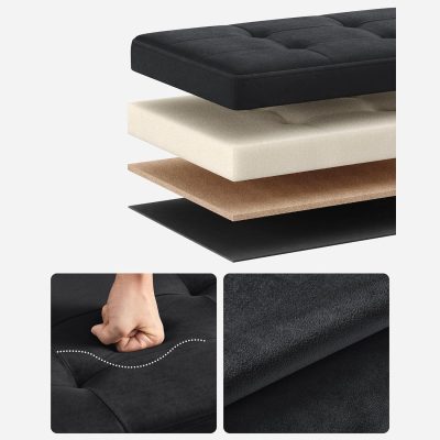 • [Stílusos & tartós] Ez a tárolóláda puha bársony anyagból készült, és részletes varrással rendelkezik az elegáns megjelenés érdekében. A robusztus MDF panelek oldalt és felül 300 kg-os statikus teherbírást is biztosítanak