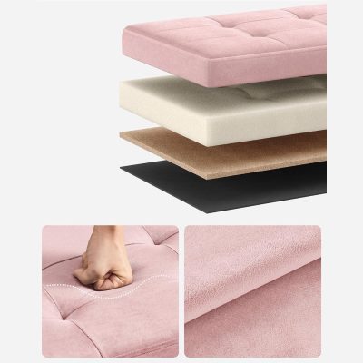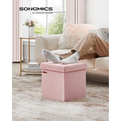 Összecsukható tárolópad fedéllel Lábtartó zsámoly 38 x 38 x 38 cm Max. teherbírás 300 kg előszoba, nappali, hálószoba, pasztell rózsaszín