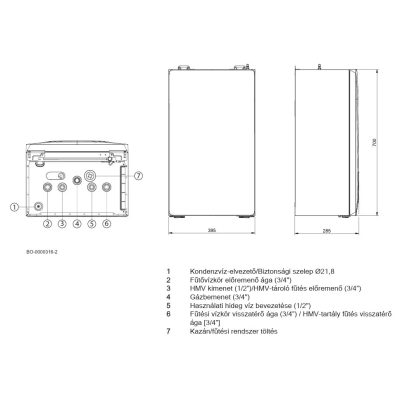 • Kivitel: fali, kondenzációs gázkazán; elérhető kombi (fűtés és használati melegvíz) és csak fűtő változatban.