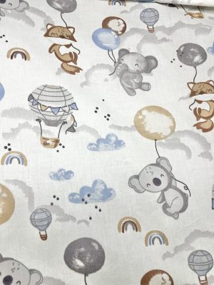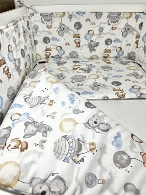 Bbaby 3 részes babaágynemű – Lufis Állatok, pamutvászon, párna, takaró, rácsvédő