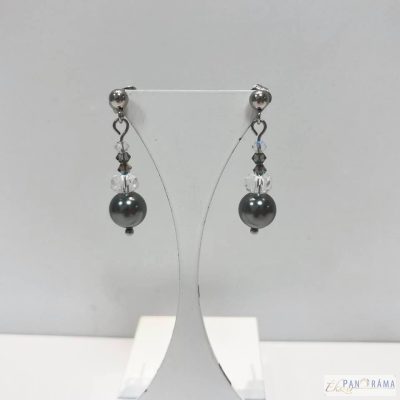 A fülbevaló különlegessége a bennük lévő csodásan csillogó szürke színű kristályok, és az ezüstösen csillogó gyöngy, ami egy igazán alkalmi viselethez illő mutatós, egyedi darab!