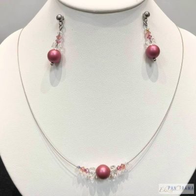 Méretek: Fülbevaló: 25 mm, Gyöngy:8mm Nyaklánc: 42-47 cm