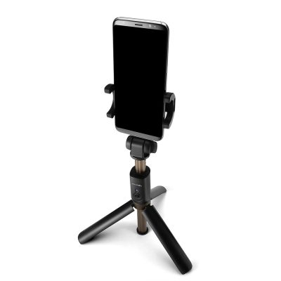 A távirányító független a szelfi bottól, így távolról is exponálhatunk a telefonunkal. Állítsd be az állványt, csúsztasd ki a vezérlőt és máris használható.