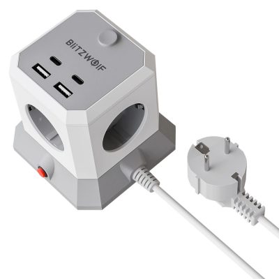 A BlitzWolf® BW-EC1 egy kompakt és erőteljes asztali töltő, amely ideális választás otthoni és irodai használatra egyaránt. Ez a töltő négy hagyományos konnektort, két USB-A és két USB-C portot tartalmaz, így egyszerre több eszköz töltését is lehetővé teszi.