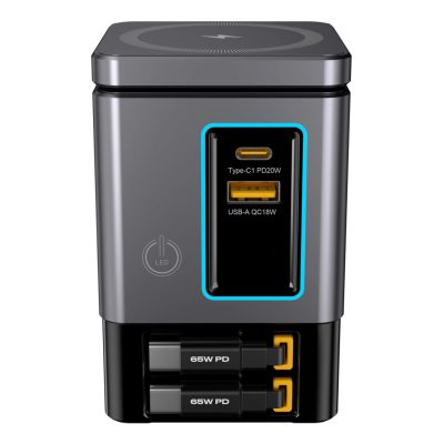 • Blitzwolf BW-i116 Max - 105W asztali töltőállomás - Beépített, visszahúzható Type-C kábel és vezeték nélküli (Qi) töltés. össz. 6 port