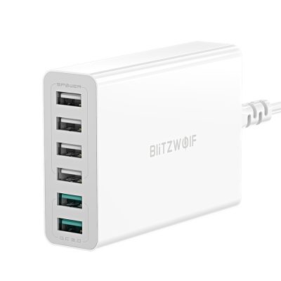 • BlitzWolf® BW-S15 asztali USB gyorstöltő, 60W, 6 USB port (2 gyorstöltő + 4 normál port)