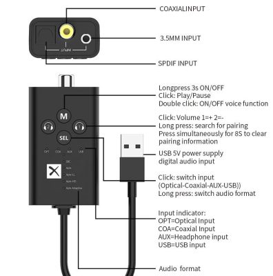 -----Bluetooth 5.2 Audio Transmitter Adapter, Bemeneti mód: USB-illesztőprogram-mentes/optikai/koaxiális/AUX 3,5mm.