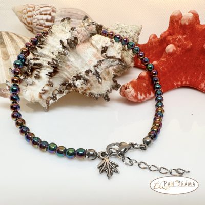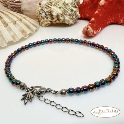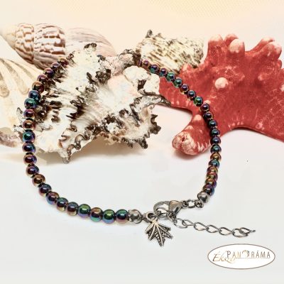 Bokalánc, karlánc ásványkő, medállal - Hematit titan color Kanabis