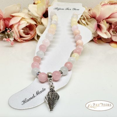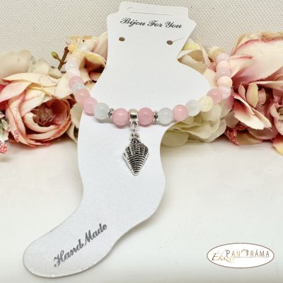 Ásvány, egyedi bokalánc, vegyes 6 mm-es gyöngyökből,ezüst színű medál díszítéssel. A gumis rugalmas megoldással több méretre is igazodik