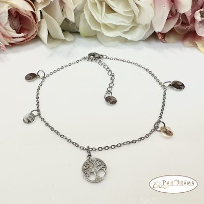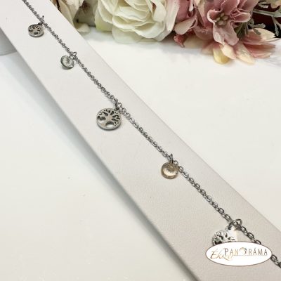 Nemesacél, antiallergén ezüst színű bokalánc életfás medálokkal