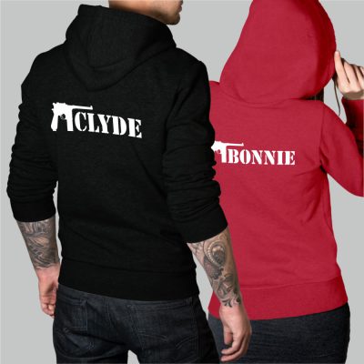 Bonnie és Clyde pisztoly fekete-piros pulóver