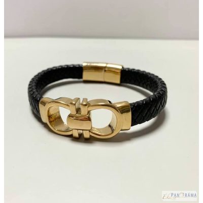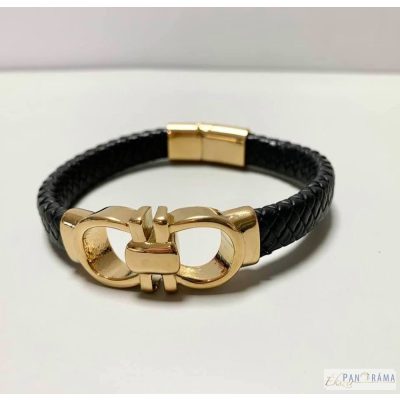 Aranyozott nemes acél és bőr szíjas karkötő. Igazán fiatalos, férfias darab!