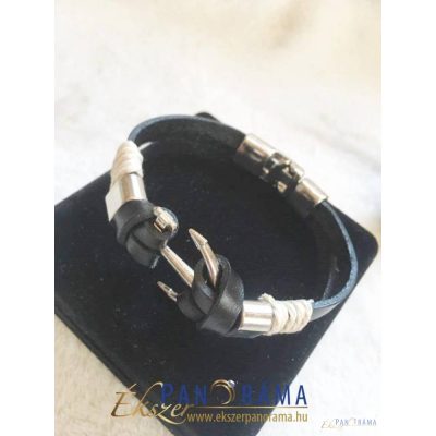 Fém és bőr szíjjal kombinált férfi karkötő. Igazán fiatalos, férfias, sportos viselet.
