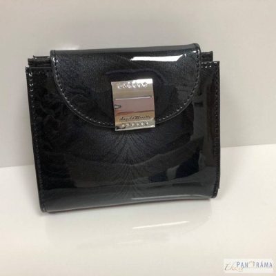 Moretti díszdobozos, olasz, lakkbőr pénztárca, fekete színben, ami ezüstös erezéssel mintázott.