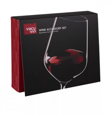 A készlet további boros kiegészítőket is tartalmaz, például pohárjelölőt vagy palackzárót, amelyek praktikusak vendégek fogadásakor vagy borozás közben. A készlet elegáns kialakítású, ezért ajándéknak is kiváló választás.