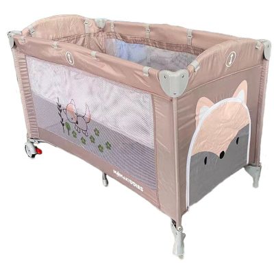 BOXING DAY - Mama Kiddies bézs emelhető magasságú utazóágy rókás mintával