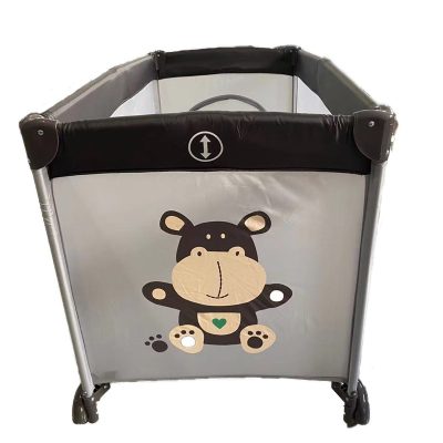 BOXING DAY - Mama Kiddies sötétbarna-szürke fix utazóágy víziló mintával