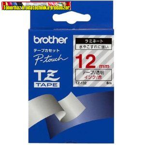 12 mm széles, 8 m hosszú, átlátszó alapon piros színű tartós laminált feliratokhoz nyomtatószalag