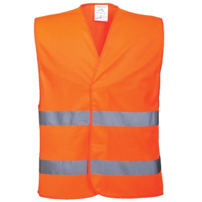 A Portwest C474 jól láthatósági mellény 100% poliészter anyagból készül, elől tépőzárral összezárható. Az alsó részén két fényvisszaverő szalag fut körbe.