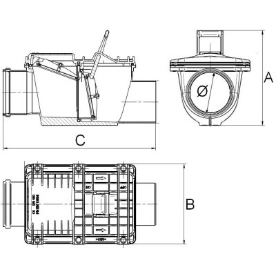 • Capricorn Duo Protect visszacsapó szelep dupla csappantyúval NA125 lefolyó rendszerhez, zárható kivitel (szennyvízhez, esővízhez)