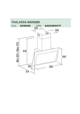 • CATA OUTLET - Páraelszívó THALASSA 900 XGBK/F fekete Hob to Hood - Kiállított bemutató termék!