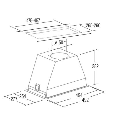 A készülék továbbfejlesztett energiatakarékos és költséghatékony szabályozható ECO LED világítással rendelkezik, melynek élettartama tízszerese a hagyományos izzókénak, ugyanakkor 90 %-kal kevesebb energiát fogyaszt. Ez a páraelszívó felső szekrénybe vagy kürtőbe építhető és 3 fokozattal rendelkezik. A készülék alján lévő fém zsírfilter mosogatógépben mosható.